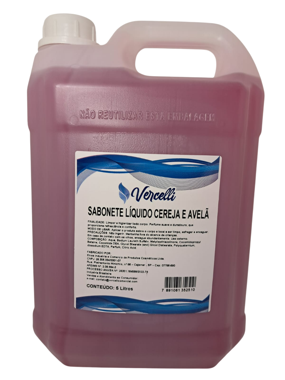 Modo de Usar: Aplique uma pequena quantidade do Sabonete Líquido Vercelli, realizando movimentos circulares e enxágue.